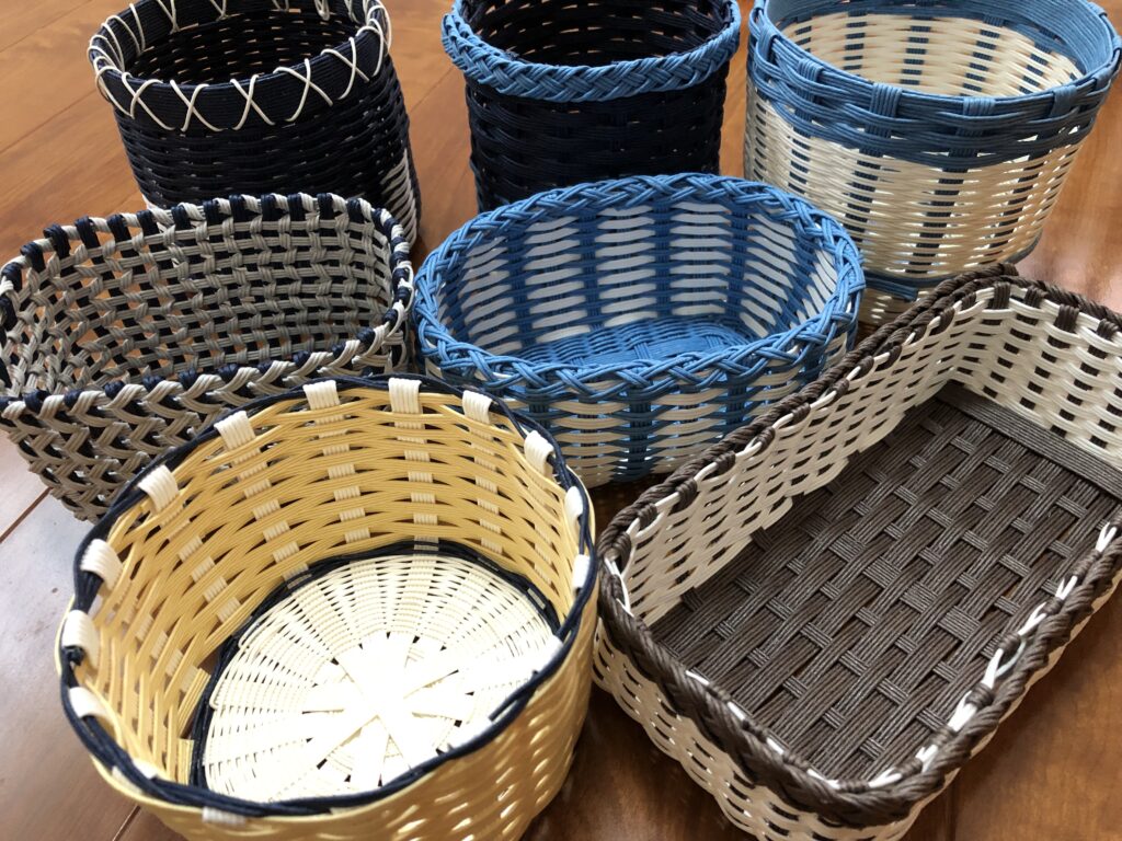 クラフトバンドを使った作品制作も、りあむの代表的な活動の一つです。クラフトバンドとは、紙から作られているハンドメイド用の紐のことで、インテリアやお出かけに使えるかごやバッグ、コースターや小物入れまで、異なるカラーを組み合わせたり、大きさ違いで作って揃えたりと、楽しみ方も幅広いのが特徴となっています。